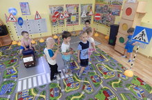 Педагоги детского сада стараются с ранних лет воспитать у детей уважение к службе дорожной безопасности, познакомить с правилами поведения на дороге. Ребята вместе с воспитателями отправились в увлекательное путешествие по следам дорожных знаков и светофора. Воспитатели рассказали детям к чему может привести нарушения правил дорожного движения. Дети рассказывали стихи, отвечали на сложные вопросы, учили младших товарищей знакам дорожного движения. Самым интересным для малышей стала «Поездка на автомобиле».