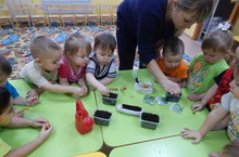 В детском саду «Зернышко» снова стартовала акция «Огород на подоконнике». Воспитатель с малышами сажала лучок. Попутно воспитатель загадывала детям загадки и заучивала потешки про лук. Полученные знания дети закрепили во время д./и «Овощи». В качестве физ. минутки была разучена песенка «Урожай собирай».