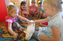 Далеко не у каждого из наших воспитанников есть домашние животные. Да,ухаживать за "братьями нашими меньшими" - нелёгкая работа. И по плечу она только тем, кто искренне любит животных. В детском саду "Зёрнышко" экологическому воспитанию дошкольников отводится особое место. У нас есть настоящий "живой уголок", где поселились красноухие черепахи, хомячок, рыбки и кролик. Каждое утро в нашем саду начинается с дежурства по "уголку природы": ребятишки с огромным удовольствием работают в нём: поливают и взрыхляют растения, убирают в клетках с хомячком и кроликом, меняют воду в бассейне для черепашек. Эта трогательная забота о питомцах создаёт особую атмосферу в нашем детсаду. Сотрудники "Зёрнышко" не сомневаются в том, что наши выпускники вырастут добрыми и отзывчивыми людьми, трогательно относящиеся ко всему живому на земле!