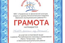 Наш коллектив принял активное участие в спортивной акции "Кросс Татарстана - 2015". Были награждены грамотой.