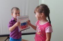 * эстафета «Водоносы» - название говорит само за себя, воспитанники должны перенести воду стаканом из одного таза в другой. Детям очень понравилась эта часть!