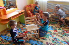 Вместе с детьми повторили названия мебели на татарском языке. Мальчики «вошли» в роль мебельщика.