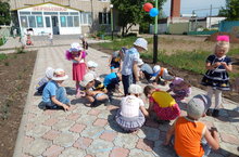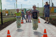 Были проведены конкурсы, дети танцевали, пели песни. Детишки были очень довольны. В конце праздника дети рисовали на асфальте разноцветными мелками.