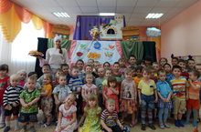 Вот такую, одну из самых известных и любимых сказок, довелось посмотреть нашим малышам накануне выходных дней. Это была поучительная история про Федору, от которой сбежала вся посуда и кухонная утварь. А почему? Так ведь бабушка та сначала была неряхой! Ребятишки очень эмоционально реагировали на действо, происходящее на сцене. Если в самом начале они смеялись над беспечной и нерадивой бабкой, то в середине уже искренне жалели несчастную Федору, а в конце - бурно радовались за исправившуюся хозяюшку и до блеска вымытую ею посуду.