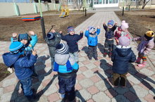 Выйдя на участок, обратили внимание детей на теплую погоду: от солнышко – тепло. Солнце огромное, раскаленное. Обогревает всю земли, посылая ей лучи.