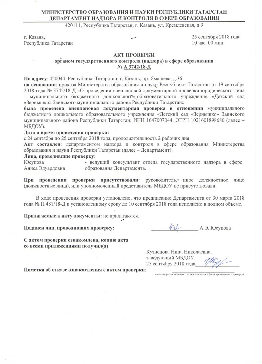 Предписание департамента надзора и контроля в сфере образования МОиН РТ №П 1375/13 от 28.05.2013