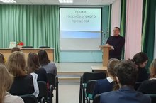 Сегодня на базе МБОУ "ЗСОШ №2" для старшеклассников города провел лекцию "Уроки Нюрнбергского процесса" депутат Альметьевского муниципального района, кандидат экономических наук, председатель ГЭК КФУ, участник 3,4 Международного форума "Нюрнбергский процесс: история и современность", член РВИО Александр Лапко. Урок прошёл в рамках образовательного процесса по распространению знаний о Великой Отечественной войне.