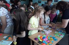 Сегодня в пришкольном лагере "Кояшкай" функционировало кафе, где все ребята могли обналичить свои полученные "золотые" (лагерные деньги) на канцтовары и различные принадлежности для творчества