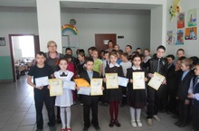 8 мая на линейке посвященной 9 мая, ученикам вручались грамоты и дипломы городских конкурсах "Дати рисуют войну" и за конкурс "Творцы среди нас" посвященный к году национальных культур.