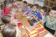 Балалар белән китапханәгә экскурсиягә бардык.Гөлфия Хәсән кызы кызыктыргыч,мавыктыргыч итеп китаплар турында сөйләде.Балалар язучылары .шагыйрҗләре белән таныштырды.