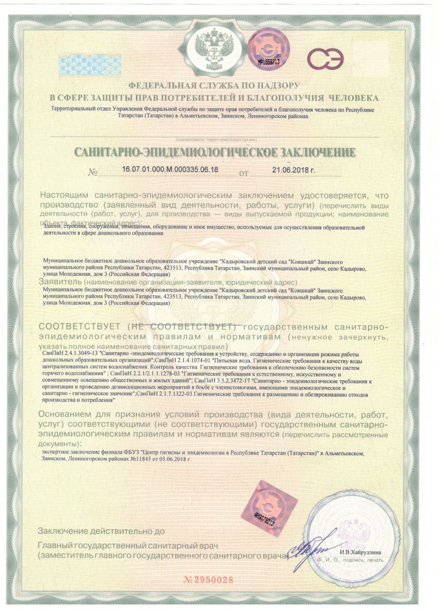 Санэпидемиологическое заключение