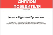 Поздравляем победителя в номинации "Лучшая идея исследования" (направление "Конкурс исследовательских проектов учащихся") 21.05.2020