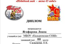 В муниципальноме конкурсе творческих работ "Победный май - весна 45 года" Лиана Ягафарова заняла 3 место. Поздравляем! 22.05.2020