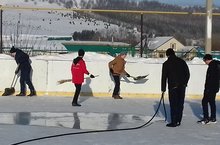 На катке под руководством Равиля Миннеразиевича ведутся технические работы по заливке льда. 28.01.2020