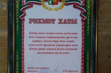 Кадер авылы җирле үзидарә башлыгы Нуруллин Р.М. мәктәп коллективына авыл мәдәният тормышында актив катнашканнары өчен Рәхмәт хаты тапшырды.