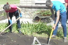 Мәктәпнең яшелчә бакчасында балалар чөгендер, кишер түтәлләрен чүпләрдән чистарттылар, рәт араларын йомшарттылар. Чәчәклеккә су сиптеләр.