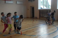 Спорт залында балаларның иң яраткан уеннары - эстафета. Ике командага бүленеп ярышуда балалар сынатмыйлар: узышалар, куышалар, җитезлекләрен күрсәтәләр. Балаларга хәрәкәтле уеннар бик ошый.