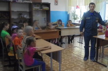Бүген "Йолдыз"га МЧС хезмәткәре Абдуллин Әлфис абый килде.Ул балаларга янгын куркынычсызлыгы кагыйдәләре турында сөйләде.Көннәрнең бик эссе торуын исәпкә алып ,су буенда ялгыз гына төшмәскә һәм суга кермәскә кушты.