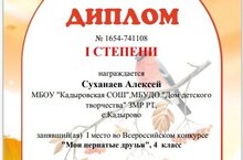 Внеурочная деятельность и объединение "Юный зколог". Результаты всероссийского конкурса "Мои пернатые друзья" 26.12.2023