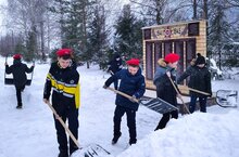 Ребята нашей школы постоянно шефствуют над памятником: следят за его состоянием, стоят в торжественном карауле при проведении митингов, убирают листья, летом ухаживают за цветниками, зимой очищают от снега.