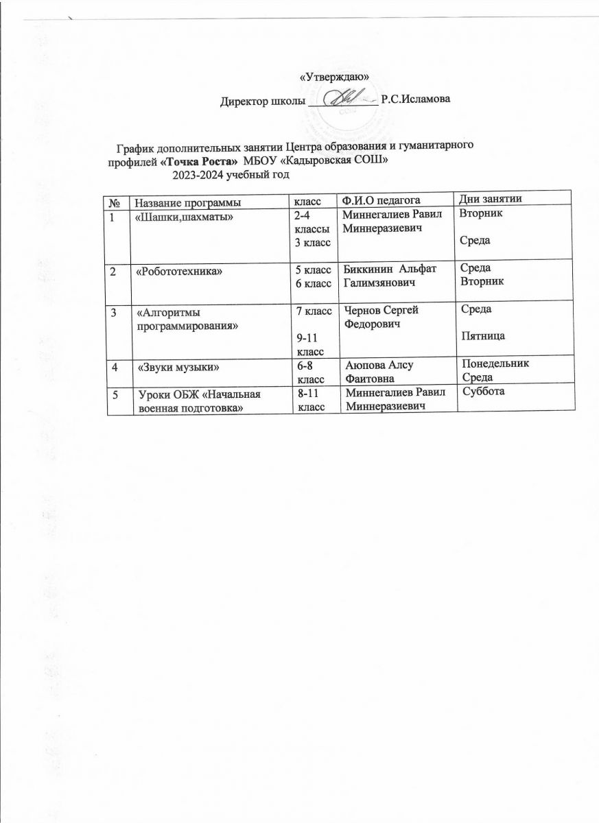 График Дополнительных занятий Точка Роста 2023-2024 учебный год