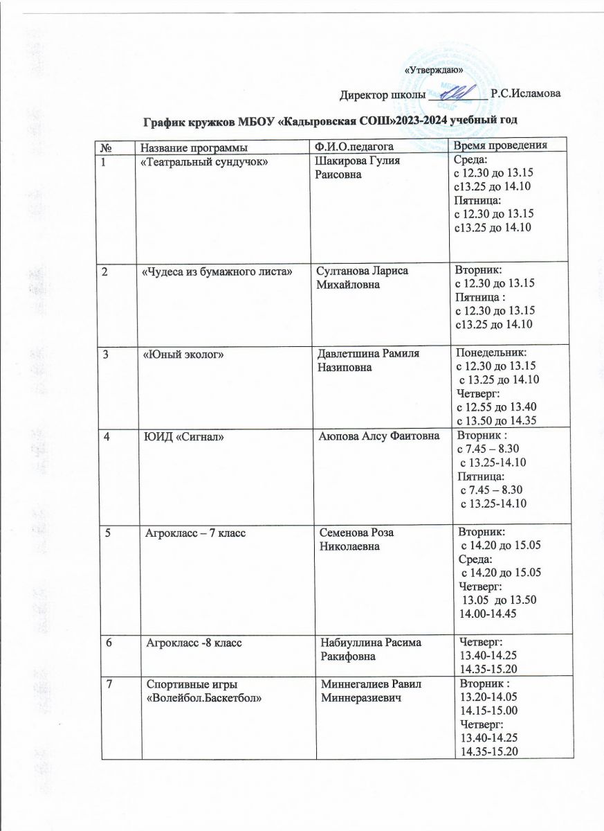 График кружков 2023-2024 учебный год