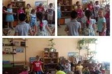 Бүген, 3нче август көнне, татар теле тәрбиячесе Ханнанова А.А., II-нче кечкенәләр төркеме балаларына Абдулла Алиш әсәре буенча ясалган “Каз белән Аккош” мультфильмын каратты. Тәрбияче мультфильмны караганнан соң балалар белән хәрәкәтле уеннар оештырды: “Кем тизрәк?”, “Тупны иптәшеңә бир!”, “Сикер, сикер матур туп!” һ.б. Балаларга бик күңелле һәм рәхәт булды.