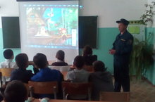 Куркынычсызлык кагыйдәләрен укучыларга МЧС хезмәткәрләре аңлатты. Укучыларга мультфильм күрсәтелде.