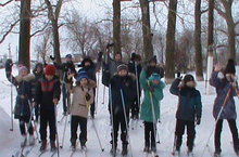 Башлангыч сыйныф укучылары сәламәтлекләрен кайгырта. Дәрес саен чаңгыга баса.