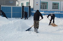 Ученики-тимуровцы очистили от снега прилегающую территорию домов ветеранов.