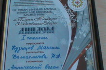 17.01.2016 в г. Казани состоялся VIII фестиваль кряшенской песни "Туым Жондызы". Ученик 7 класса Кузнецов Максим стал дипломантом I степени. Ученица 6 класса Валиахметова Рената стала дипломантом II степени. Поздравляем!