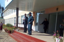 МЧС хезмәткәрләре укучылар белән очрашып, аларга янгын куркынычсызлыгы кагыйдәләрен аңлатты.