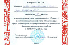 Учащиеся нашей школы сегодня в муниципальном этапе соревнований по "Теннису" в рамках муниципального этапа II Спартакиады среди обучающихся общеобразовательных организаций Заинского муниципального района в 2018 - 2019 учебном году заняли почетное 2 место. Руководитель учитель физической культуры Загариев И.М. Молодцы. Поздравляем.