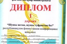"Шушы яктан, шушы туфрактан без" республикакакүләм фәнни-гамәли конференциясендә катнашып 11 сыйныф укучысы Исрафилов Ришат 1 нче урынга лаек булды.