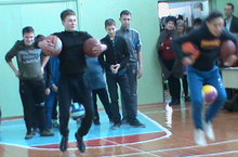 Бәйрәм уңаеннан мәктәбебезнең егетләре ике командага бүленеп ярыштылар. Үзләренең җитезлекләрен күрсәттеләр.