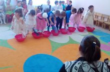 Балалар бакчасы балалары "Кем тизрәк" уенын уйнадылар.