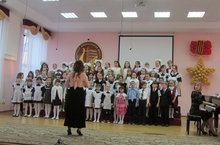В заключении дружественной хоровой встречи коллективы школ совместно исполнили два произведения: "Славим солнце" М.Ипполитова-Иванова и "Пусть всегда будет солнце" А.Островского. Благодарим Елену Леонидовну за творческое общение и методическую помощь.