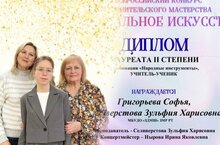Стали известны результаты III Всероссийского конкурса «Музыкальное искусство». В номинации «Учитель-ученик» блистательно выступил инструментальный дуэт в составе Селиверстовой Зульфии Харисовны и Григорьевой Софьи.