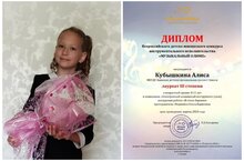 В конкурсе "Инструментальный шедевр" в номинации "Инструментальное искусство" она стала Лауреатом I степени. Поздравляем с победой Алису и её преподавателя Федюнину Ольгу Борисовну. -
