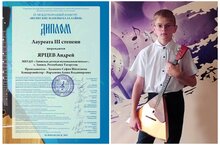 Ученик нашей школы Ярцев Андрей стал победителем. Он награжден грамотой Лауреата III степени и нотными сборниками для балалайки в переложении Усова А. А.
