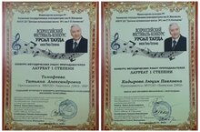 В номинации "Методические статьи, аранжировки, обработки, переложения" приняли участие преподаватели Тимофеева Татьяна Александровна и Кадырова Люция Павловна. Они стали Лауреатами 1 степени.