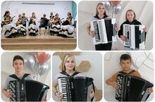 2) Международный фестиваль - конкурс "Творческое содружество": Лауреаты I степени - фольклорный ансамбль "Чылтыр - Чишмэ", ансамбль аккордеонистов, Хакимуллин Раиль, Кокурина Злата, Миронов Богдан.