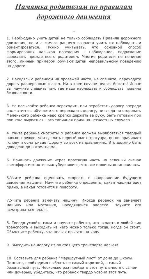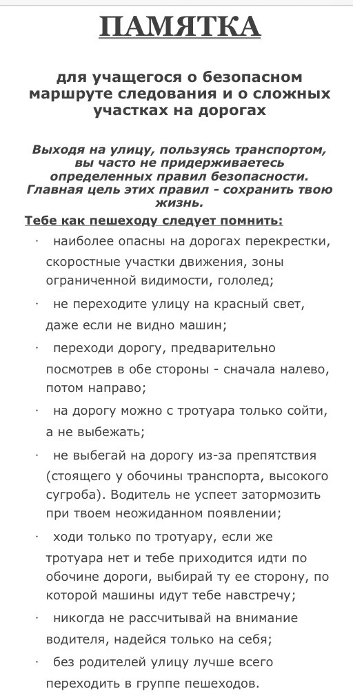 Памятка детям о безопасном маршруте следования и о сложных участках дороги