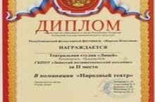 11 декабря 2015 года в Казанском государственном институте культуры состоялась церемония награждения по итогам Республиканского фольклорного фестиваля «Народы Поволжья». Театральная студия «Лицей» под руководством педагога дополнительного образования Нуждовой М.В. представила на суд строжайшего жюри мини – спектакль «Долгожданный праздник Сабантуй!». Отрадно и то, что основной состав студии –первокурсники, начинающие артисты, смогли завоевать II место в номинации «Народный театр» среди большого числа участников. -