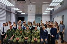 13.02.2023 года В рамках месячника "Патриотического воспитания" мастера производственного обучения Ю.А. Демидова и С.Н. Кырмагина а также студентка группы 812 по профессии "Кондитер" Нормуратова Зарина посетили МБОУ Зсош №7 3 "В" класс