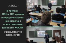 24 января, в группах 1491 и 1191 прошла профориентационная встреча с представителем Заинского УФСИН Ивановым Андреем Васильевичем
