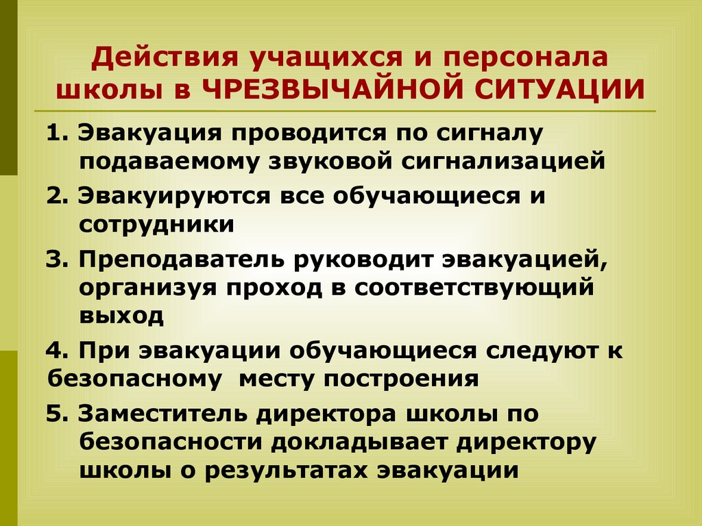 Действия воспитанников и персонала спортивной школы в чрезвычайной ситуации