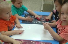 Одним из приоритетных видов изобразительной деятельности для воспитанников первой младшей группы является лепка. Этот вид творчества задействует рецепторы на кончиках пальцев, что, в свою очередь, стимулирует работу зрительного, мыслительного, речевого центров головного мозга. Это открывает широкий спектр возможностей для решения задач образовательного процесса. Воспитатель первой младшей группы «Золотые зёрнышки» Мещанова А.А.на занятиях по лепке старается вызвать у детей интерес к пластилину, как художественному материалу; учит правильно работать с ним; знакомит со свойствами пластилина: мягкий, можно отрывать куски от большого кома, соединять их в одно целое, лепить; поддерживает стремление к образному обозначению вылепленных изделий. В процессе лепки развивается мелкая моторика рук, воображение, мышление. Дети с удовольствием мнут его в руках, раскатывают «колбаски» и «мячики».