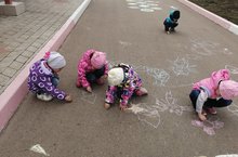 Рисование на асфальте — это не только увлекательное занятие во время прогулки, а ещё и познание детьми окружающего мира. Рисование мелом на асфальте развивает воображение, мелкую моторику, творческие способности, а самое главное, создаёт хорошее настроение, радость от собственных "шедевров". Воспитанники средней группы "Жемчужинки" заряжались хорошим настроением, рисуя на асфальте