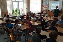После окончания урока детям показали школу. Они побывали в библиотеке, медицинском кабинете, познакомились с экспозициями школьного музея, немного поиграли в спортзале школы, увидели актовый зал и школьную столовую.